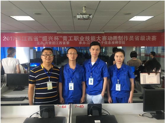 7月20日,根据《江西省人力资源和社会保障厅等五部门关于组织开展2017年中国技能大赛•江西省“振兴杯”职业技能竞赛的通知》(赣人社字〔2017〕183号)文件精神,由共青团江西省委举办的2017年江西省“振兴杯”青工职业技能竞赛活动顺利结束。我校信息工程学院蒋雨辰,王珣,王兴三名动漫专业教师组成的动画制作团队获得江西省第一名。三名教师均获得“江西省技术能手”,“江西省青年岗位能手”荣誉称号,王珣老师同时获得“巾帼建功标兵”称号。三位老师8月底将代表江西省参加在沈阳举办的全国总决赛。